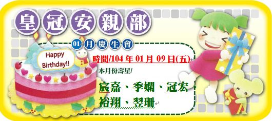 01月09日(五)皇冠大家庭01月份慶生會