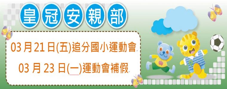 03月21日(五)追分國小運動會,03月23日(一)運動會補假
