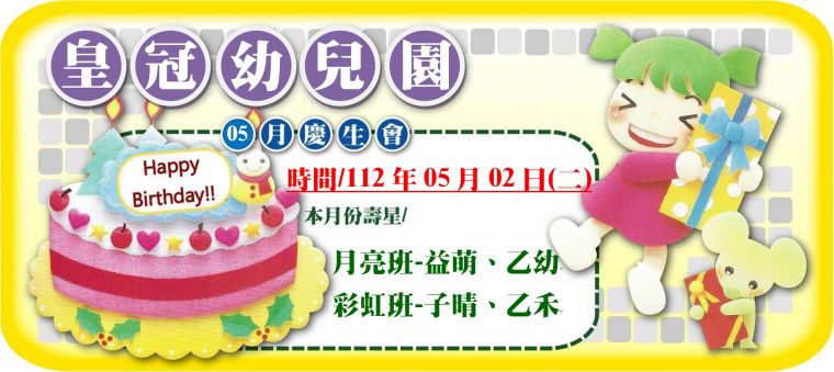 本月份壽星/月亮班-益萌、乙幼。彩虹班-子晴、乙禾。