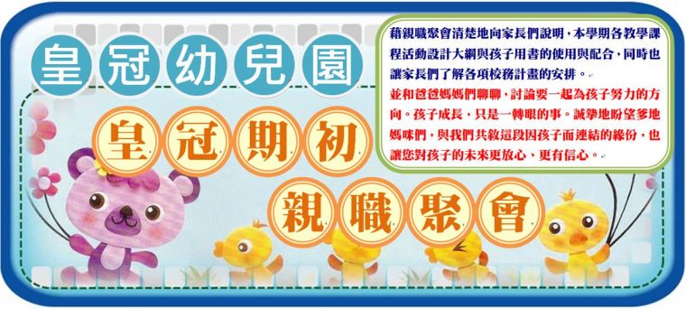 教學,是校務工作的主軸。學習,是孩子到學校的重要目的之一。藉親職聚會清楚地向家長們說明,本學期各教學課程活動設計大綱與孩子用書的使用與配合,同時也讓家長們了解各項校務計畫的安排。